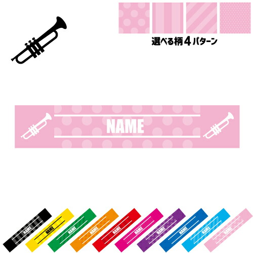 「トランペット」名入れマフラータオル タオルマフラー タオマフ スポーツタオル イベントタオル フェスタオル 首掛け ストライプ ドット 水玉 楽団 クラシック オーケストラ ジャズ ピクトグラム お揃い 部活 応援グッズ 応援マフラー 記念品 名入れグッズ