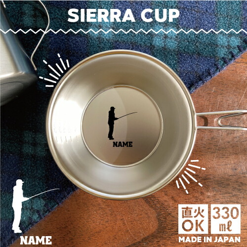 釣りフィッシング1 名入れシェラカップ 直火 キャンプ CAMP 食器 18-8 ステンレス鋼 スタッキング ファミキャン ファミリーキャンプ ソロキャン アウトドア 調理器具 バーベキュー BBQ 登山 山登り 計量カップ オリジナル 卒団記念品