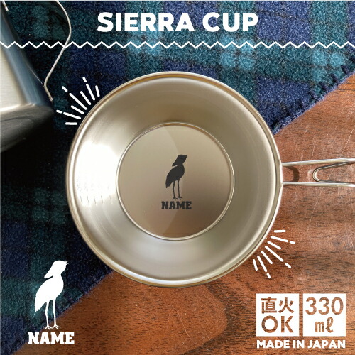 ハシビロコウ 名入れシェラカップ 直火 キャンプ CAMP 食器 18-8 ステンレス鋼 スタッキング ファミキャン ファミリーキャンプ ソロキャン アウトドア 調理器具 バーベキュー BBQ 登山 山登り 計量カップ オリジナル 動かない鳥、絶滅危惧