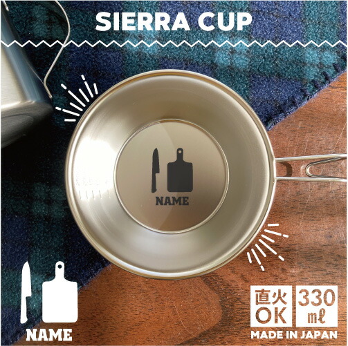 料理人 名入れシェラカップ 直火 キャンプ CAMP 食器 18-8 ステンレス鋼 スタッキング ファミキャン ファミリーキャンプ ソロキャン アウトドア 調理器具 バーベキュー BBQ 登山 山登り 計量カップ オリジナル コック シェフ 調理 まな板 包丁