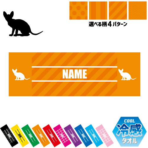 ドンスコイ 名入れ冷感タオル 冷却タオル クールタオル ストライプ ドット 水玉 柄タオル ポリエステル ネックタオル クール 清涼 首ケア 暑さ対策 熱中症対策 スポーツタオル 【rkct】猫 ネコ ねこ キャット ペット