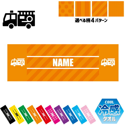 消防士 名入れ冷感タオル 冷却タオル クールタオル ストライプ ドット 水玉 柄タオル ポリエステル ネックタオル クール 清涼 首ケア 暑さ対策 熱中症対策 スポーツタオル 【rkct】運動会 体育祭 救助 火災 防火 消防