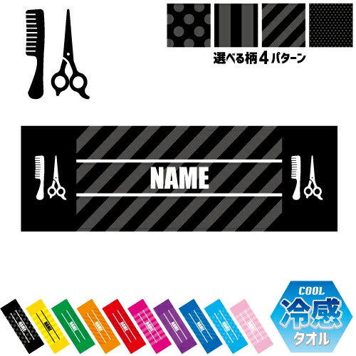 美容師・理容師1 名入れ冷感タオル 冷却タオル クールタオル ストライプ ドット 水玉 柄タオル ポリエステル ネックタオル クール 清涼 首ケア 暑さ対策 熱中症対策 スポーツタオル 【rkct】運動会 体育祭 髪 カリスマ ヘアー
