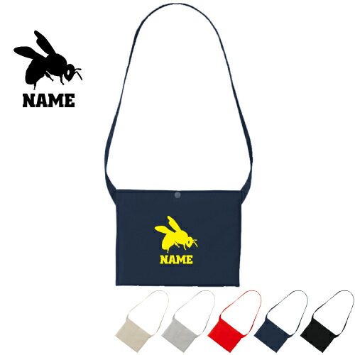 「ハチ」名入れサコッシュ/肩掛け ショルダー キャンバス地 名入れギフト 行楽 旅行 ドライブ お出かけ 母の日 母の日ギフト 母の日のプレゼント 斜め掛け 斜めがけ ワンショルダーバッグ【rcsc】昆虫