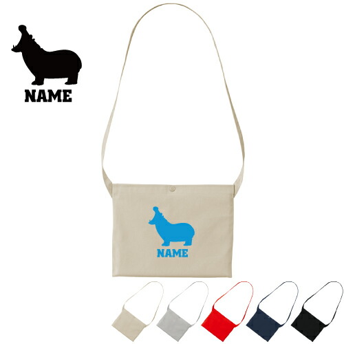 「カバ」名入れサコッシュ/肩掛け ショルダー キャンバス地 名入れギフト 行楽 旅行 ドライブ お出かけ 母の日 母の日ギフト 母の日のプレゼント 斜め掛け 斜めがけ ワンショルダーバッグ【rcsc】Hippopotamus 河馬