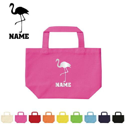 「フラミンゴ」名入れトートバッグSサイズ/エチケットバッグ、エコバッグ、ランチバッグ、名入れ、ギフト、送別会、お別れ会、謝恩会、贈り物、flamingoオフ会メンズ レディース キッズ 幼稚園 小学生 中学生 高校生 大学生 社会人 シンプル かわいい ピクトグラム