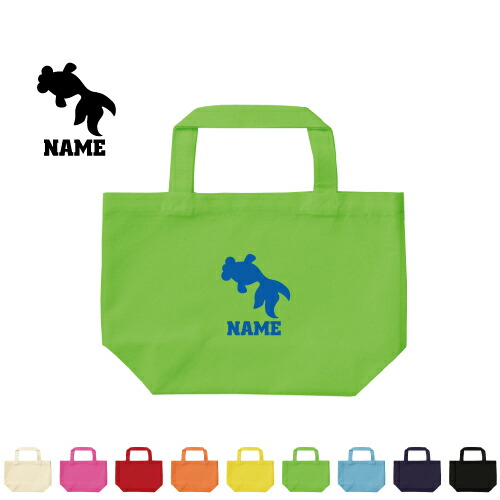 「出目金」名入れトートバッグSサイズ/キャンバス 手提げトート ランチバッグ 小物入れ 貴重品入れ メンズ レディース キッズ 男子 女子 小学生 中学生 高校生アイテム 金魚、Goldfish
