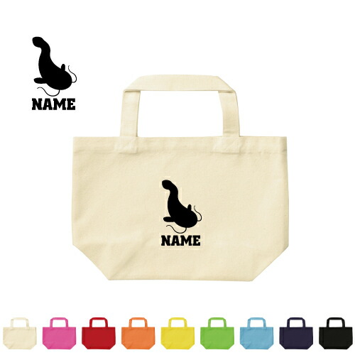 「なまず」名入れトートバッグSサイズ/キャンバス 手提げトート ランチバッグ 小物入れ 貴重品入れ メンズ レディース キッズ 男子 女子 小学生 中学生 高校生アイテム 鯰、淡水魚