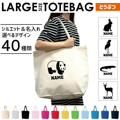 「動物1」名入れトートバッグLサイズ ゴリラ パンダ サル 牛 ブタ ライオン オオカミ トラ チーター うざぎ リス ハムスター サイ バク やぎ ひつじ コブラ ワニ ニワトリ アヒル ロバ ラクダ カバ ヘラジカ フェレット フェネック 新学期 新生活