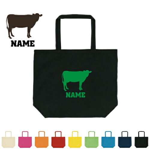 牛 名入れトートバッグLサイズ 手提げバッグ 大容量収納 キャンバストート 新学期 新生活