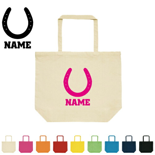 『蹄鉄』 名入れトートバッグLサイズ エチケットバッグ、 エコバッグ、大容量、名入れ、ギフト 新学期 新生活