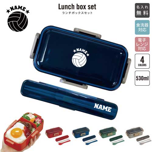 バレーボール/名入れランチボックスセット 名入れお弁当箱 カトラリー 箸 スプーン ランチボックス お名前入り お名前入れ ネーム入れ プリント シンプル ロゴ 排球