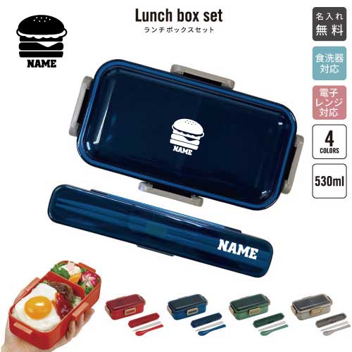 ハンバーガー 名入れランチボックスセット 名入れお弁当箱 カトラリー 箸 スプーン ランチボックス お名前入り お名前入れ ネーム入れ プリント シンプル ロゴ