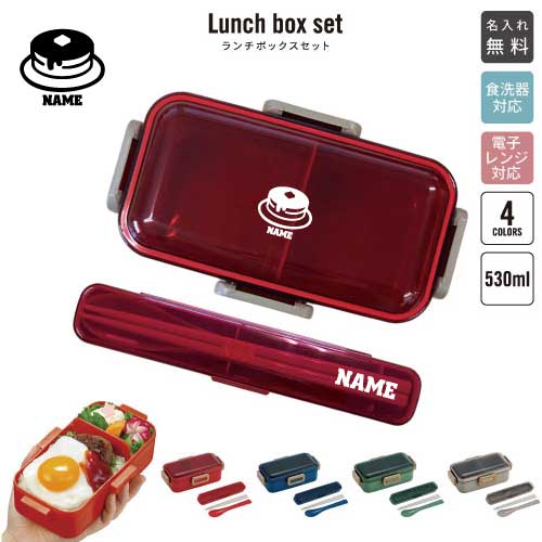 ホットケーキ 名入れランチボックスセット 名入れお弁当箱 カトラリー 箸 スプーン ランチボックス お名前入り お名前入れ ネーム入れ プリント シンプル ロゴ pancake、パンケーキ