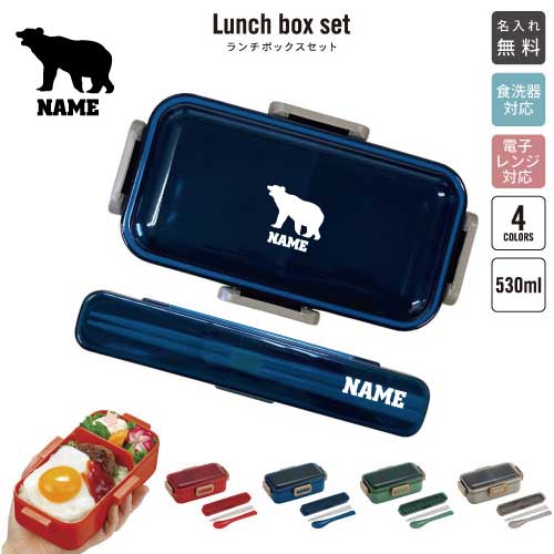 くま/名入れランチボックスセット 名入れお弁当箱 カトラリー 箸 スプーン ランチボックス お名前入り お名前入れ ネーム入れ プリント シンプル ロゴ 熊 テディベア BEAR