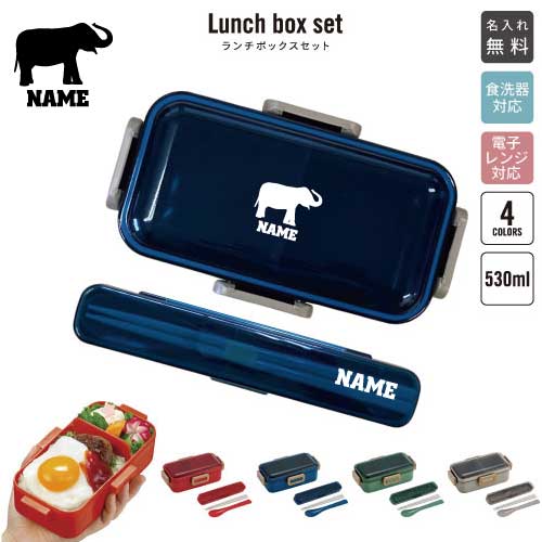 ゾウ/名入れランチボックスセット 名入れお弁当箱 カトラリー 箸 スプーン ランチボックス お名前入り お名前入れ ネーム入れ プリント シンプル ロゴ