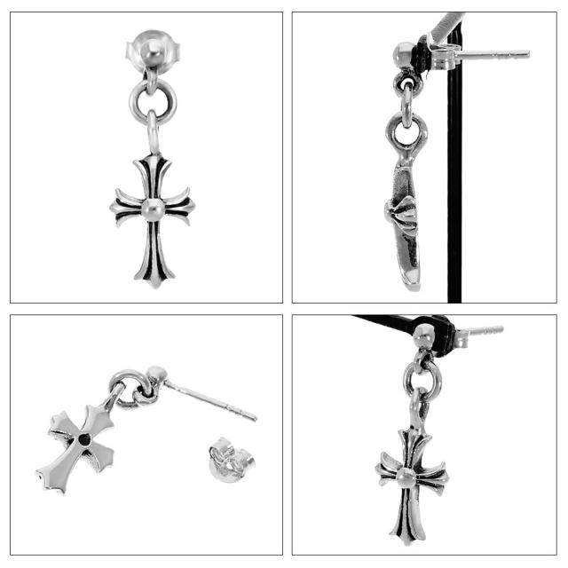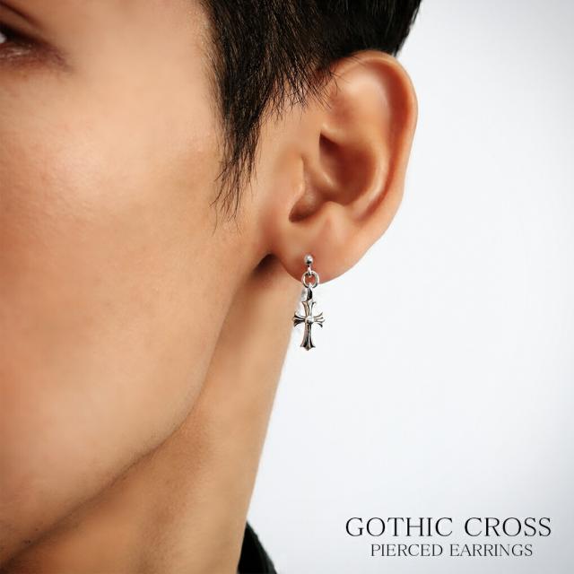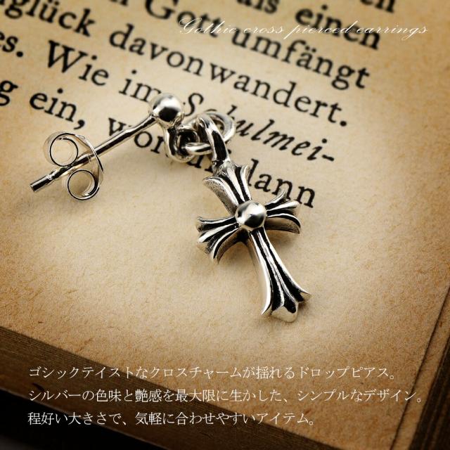 ゴシック クロス ドロップ ピアス 1P 片耳用 十字架 シルバー シルバーピアス スタッドピアス シンプル リリー 百合 ユリ リリークロス