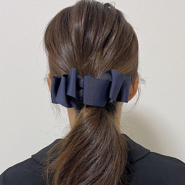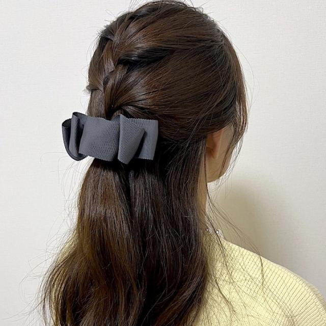 バレッタ 大きめ リボン シンプル ヘアクリップ リボンバレッタ グログラン 大きい ブラック ネイビー ブラウン 紺 黒 茶色 ヘアクリップ ヘアアクセサリー まとめ髪 面接 入学式 卒業式 通勤 通学 MRN-BA23064