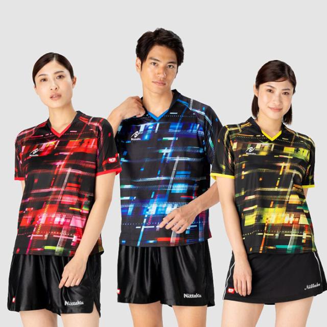 JTTA公認 ニッタク メンズ レディース ジュニア スカイステラシャツ 卓球ウェア トップス 半袖 吸汗速乾 ストレッチ ブルー レッド 青 赤 イエロー 黄色 送料無料 Nittaku NW-2213