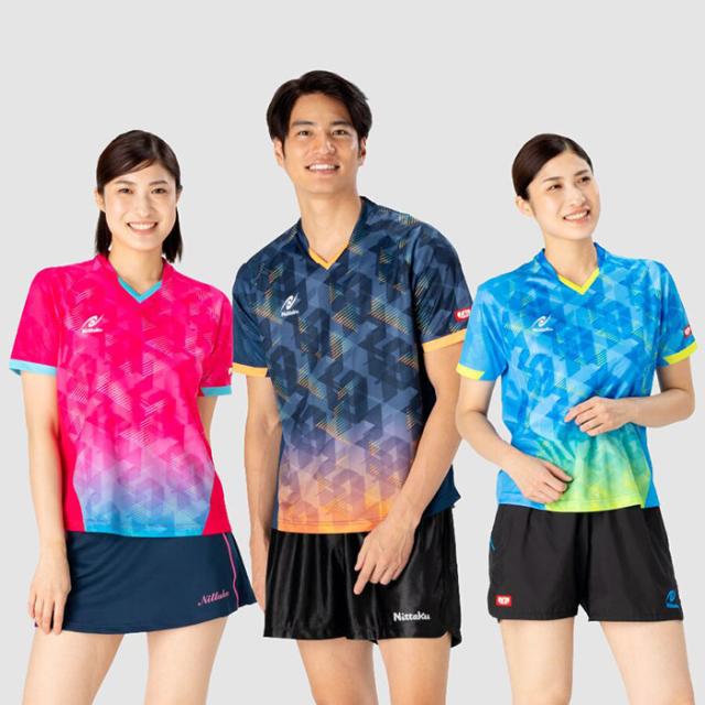 JTTA公認 ニッタク メンズ レディース ジュニア スカイスコープシャツ 卓球ウェア トップス 半袖 吸汗速乾 ストレッチ ネイビー ブルー 青 ピンク 送料無料 Nittaku NW-2214