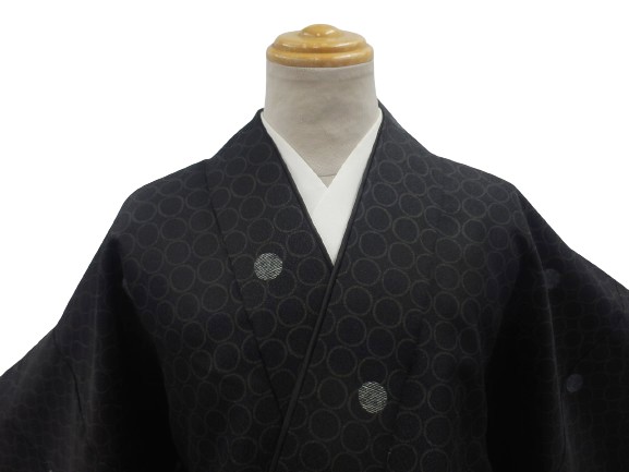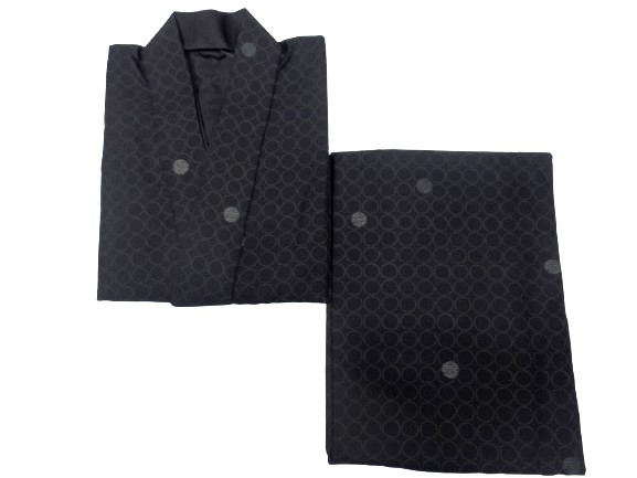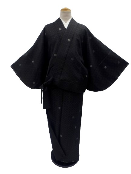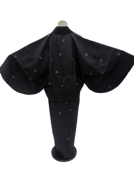 丸洗いできる着物 帯のいらない 着物 二部式 洗える二部式(袷) Lサイズ 黒地 水玉 柄 No.2436