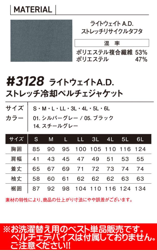 [即納]アイズフロンティア 冷却ペルチェ専用ジャケット 単品 3128 冷却ウェア 熱中症対策