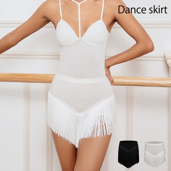 社交ダンススカート ダンススカート ダンスウェア スカート タイトスカート 透け感あり ゴムスカート 練習着 レッスン用 ラテン フリンジ レッスン着 フリル 社交ダンス レディース ウェア 競技着 練習服 発表会 イベント ダンス 黒 白 dm136l9