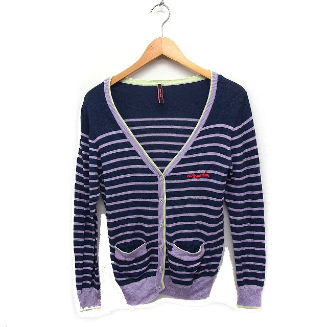 【中古】ニコルクラブ NICOLE CLUB 179/WG ニット カーディガン ボーダー Vネック 綿 F ラベンダー ネイビー 紺 /FT12