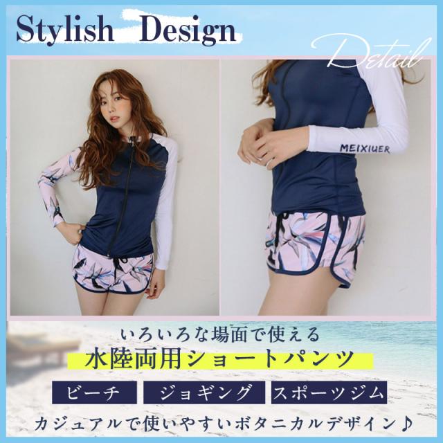 ボタニカル柄デザインのショートパンツは、ビーチではもちろんジョギング、スポーツジムなどのトレーニングウェアとしても。