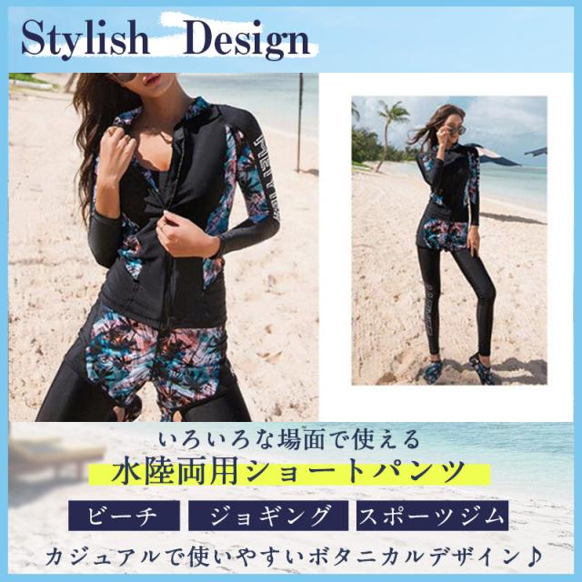 ボタニカル柄デザインのショートパンツは、ビーチではもちろんジョギング、スポーツジムなどのトレーニングウェアとしても。