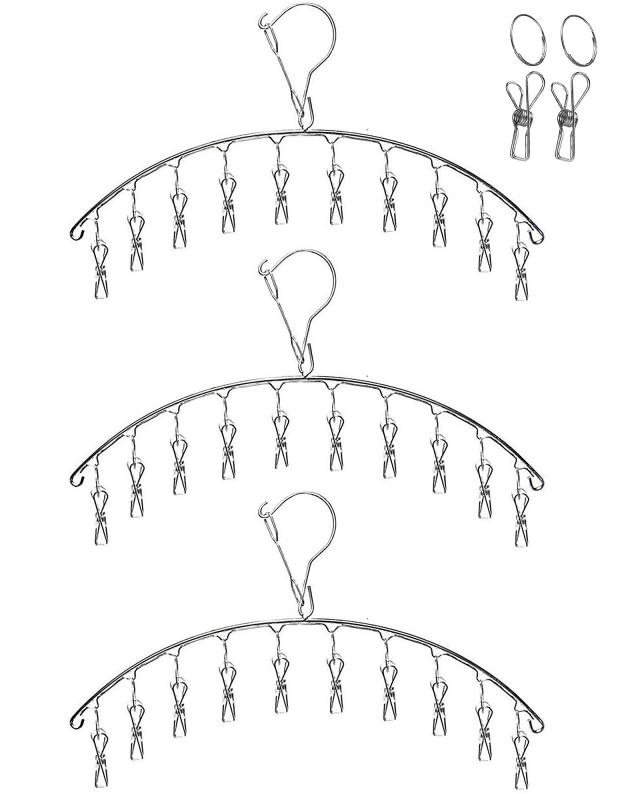 Qualsen ピンチハンガー 洗濯ハンガー 洗濯物干し ハンガー 10ピンチ 3本 ピンチハンガー ステンレス 防風フック 収納便利