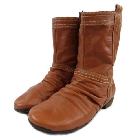 【中古】キスコ KISCO ブーツ ショートブーツ シワ加工 レザー ブラウン 茶 38 レディース