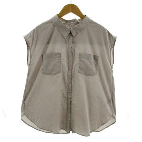 【中古】グローバルワーク GLOBAL WORK シャツ フレンチスリーブ バックボタンダウン コットン混 グレージュ M