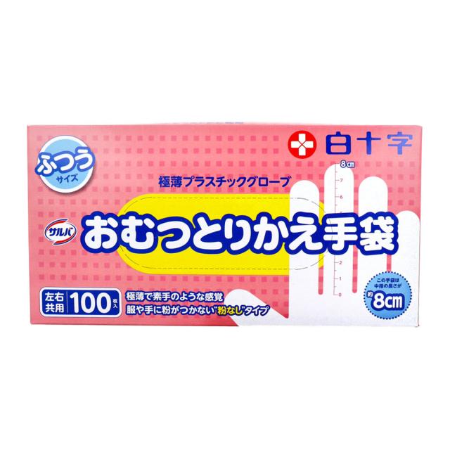 白十字 サルバ おむつとりかえ手袋 パウダーフリー 塩化ビニル樹脂製 左右兼用 ふつうサイズ 100枚入り X3箱