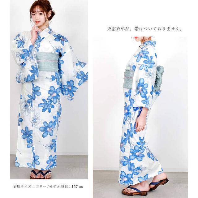 浴衣 レディース 女性浴衣 単品 浴衣単品 仕立て上がり 浴衣レディース 女性用 白 ホワイト 青 ブルー 花柄 お洒落 可愛い