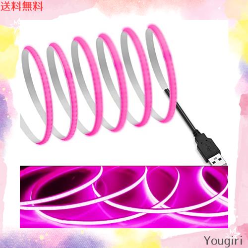 【RYE】 COB テープライトLEDストリップライトフレキシブル 高密度 幅5mm 隠れたLEDテープライト1.5m 320LEDs/m ピンク DC5V 180°発光CR