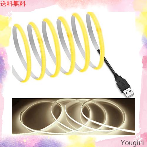 【RYE】 COB テープライトLEDストリップライトフレキシブル 高密度 幅5mm 隠れたLEDテープライト3m 320LEDs/m 昼光色4000K DC5V 180°発