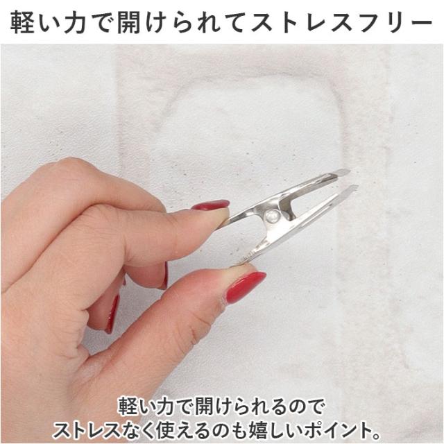 | 商品説明 | ・シンプルで使いやすい!ステンレス製の洗濯ばさみが登場。 【毎日使いにピッタリなステンレス製】 ・毎日使うのにちょうどいいミニサイズ♪軽量でサビにくいステンレス製の洗濯ばさみ。 【軽い力で開けらてストレスフリー】 ・軽い力で開けらるのでストレスなく使えるのも嬉しいポイント。 【風の強い日も安心な強力クリップ】 ・洗濯物をしっかりと留めてくれるので、風の強い日も安心♪ 【壊れにくい丈夫なつくり】 ・ステンレス製の丈夫なつくりなので、日に当たっても割れたり、変形しにくい! 【使い勝手の良いサイズ】 ・洗濯物を干すときはもちろん、紙類などをまとめるステーショナリーとしても活躍◎ |