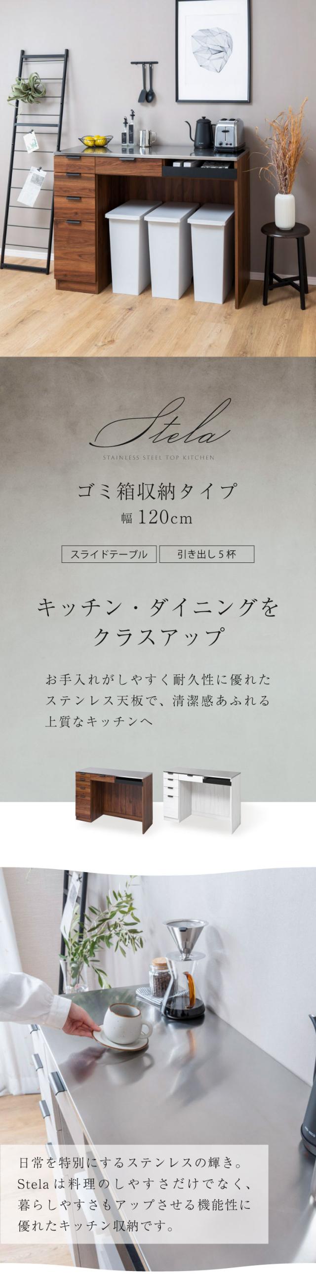 | 商品名 | Stelaステンレストップ カップボード ゴミ箱収納タイプ 幅120cm |