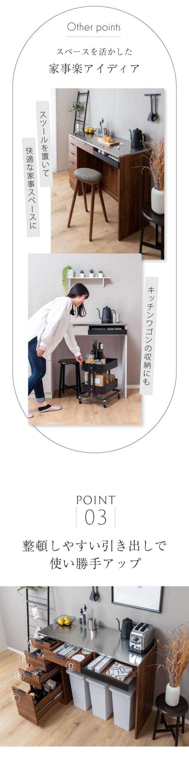 ステンレス天板 キッチンカウンター ゴミ箱上 ラック レンジ台 幅120 キッチンラック ゴミ箱上収納 レンジラック レンジボード 間仕切り 食器棚 ロータイプ 引き出し 作業台 北欧 木製 おしゃれ シンプル