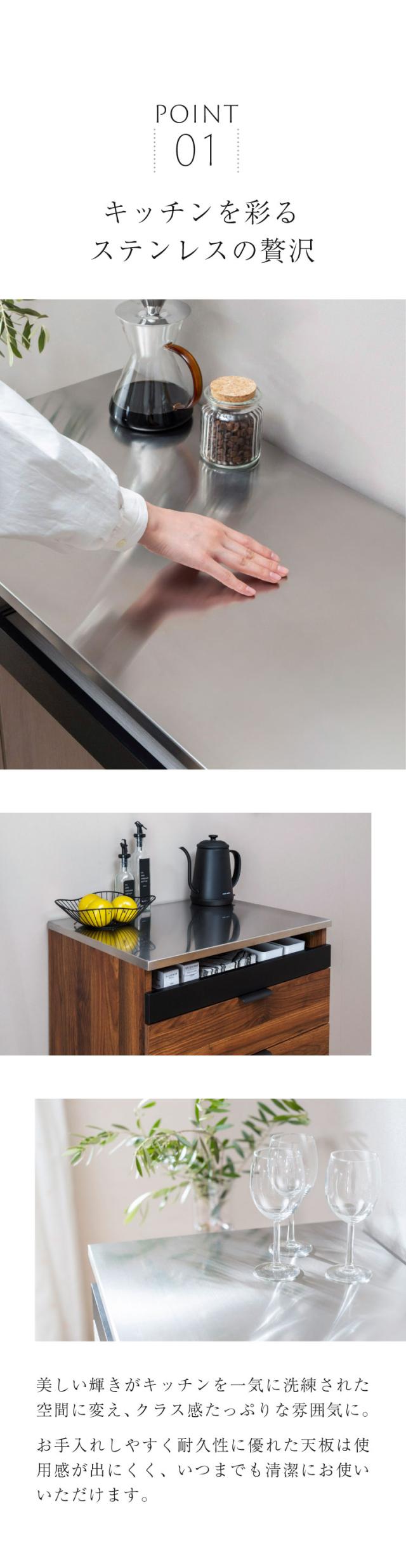 ステンレス天板 チェスト キッチン収納 チェスト 引き出し レンジ台 幅60 キッチンラック カップボード レンジラック レンジボード 間仕切り 食器棚 ロータイプ 作業台 北欧 木製 おしゃれ シンプル