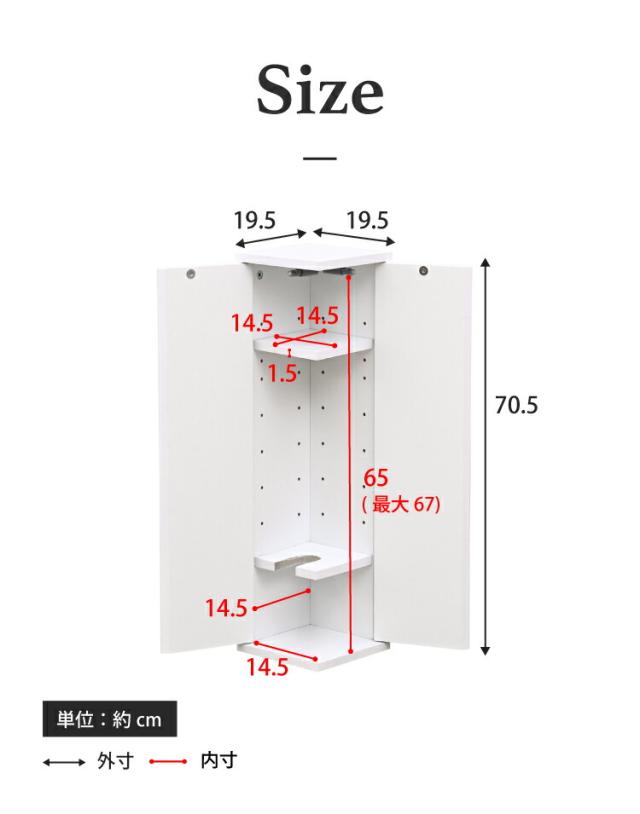 ◆扉内内寸:幅約14.5×奥行約14.5×高さ約65(最大約67)cm