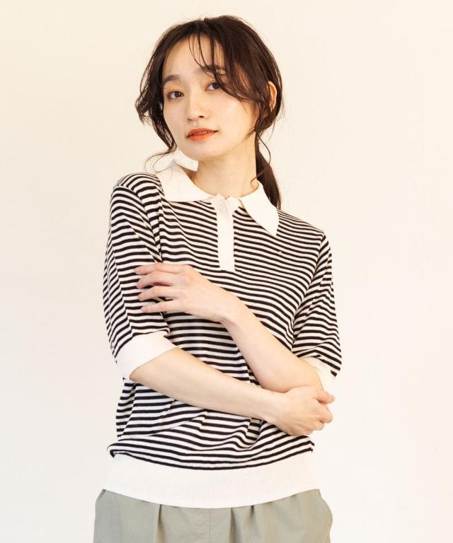【大きいサイズ】 9号・15号・19号(M・3L・5L) FONTLAB ボーダーポロニット
