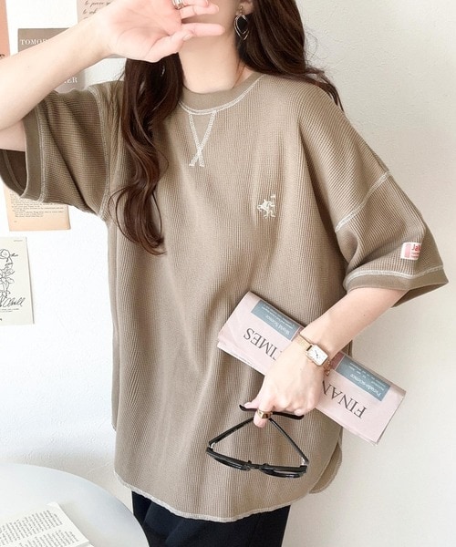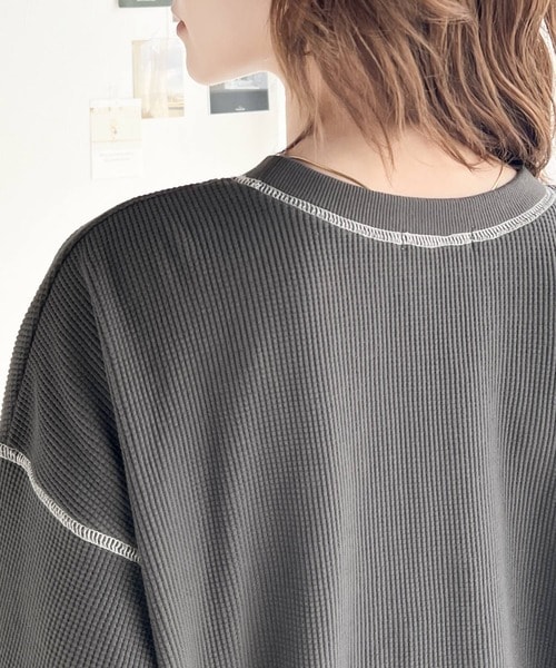 今年らしいゆったりシルエットのワッフルトップス。