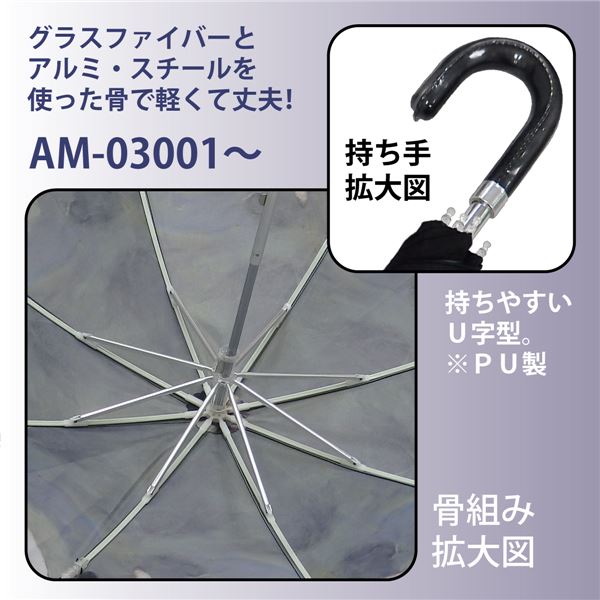 ■材質:かさ生地の組成/ポリエステルポンジー100%(二重張り)、ハンドル/PU、リブ/グラスファイバー・アルミ、シャフト/アルミ・スチール