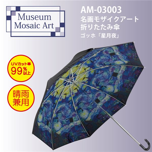 ユーパワー 名画モザイクアート 折りたたみ傘 晴雨兼用 ゴッホ「星月夜」 星空に輝く夜、ゴッホの名画が傘に 美しいモザイクアートが晴雨兼用の折りたたみ傘に 雨の日も晴れの日も、あなたを彩るアート 送料無料
