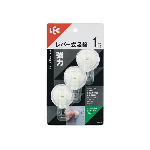 パワフルな吸着力を持つツールフック3個セット お部屋の整理 収納 やインテリアに便利 操作性と吸着力に優れ、壁や窓、タイルに取り付け可能 使い勝手とデザイン性を兼ね備え、お部屋をスッキリと整える 【3個セット】 レック レバー式 吸盤 ツールフック (ミニ) 3個入 H00474