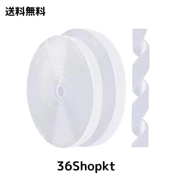 【商品仕様】パッケージ内容:強力面ファスナー オス1巻+強力面ファスナー メス 1巻、サイズ:幅2.5cm×長さ5m(オス・メス各5m)、カラー:ホワイト。ハサミで好きな長さに切ります。