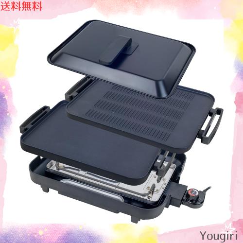 [山善] ホットプレート 大型 ワイド 焼き肉プレート 平面プレート リバーシブル 保温~200℃ ヘルシー 可動式スタンド 着脱式プレート 自
