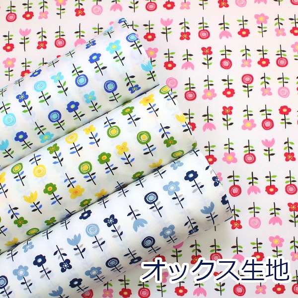 【10cm単位価格】 きれいに並んだいろんなお花 花柄 シンプル オックス 綿100% 生地 布 約110cm幅 99190-2 ゆうパケット2m対応 ( ハンドメイド 手作り 可愛い バッグ シューズ入れ 手芸 入園 入学 巾着 雑貨小物 日本製 )